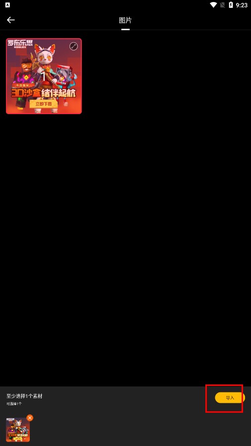 3、在圖片選擇頁面,選擇好封面圖后,點(diǎn)擊【導(dǎo)入-按鈕】。
