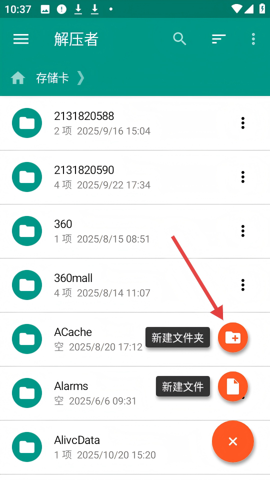2、點擊橙色+按鈕后,可選擇【新建文件夾】或【新建文件】功能,滿足不同創(chuàng)建需求。