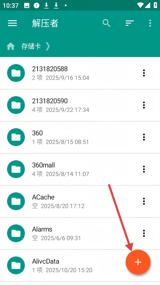 1、在解壓者的存儲卡界面,點擊右下角橙色【+】按鈕可進(jìn)行后續(xù)操作