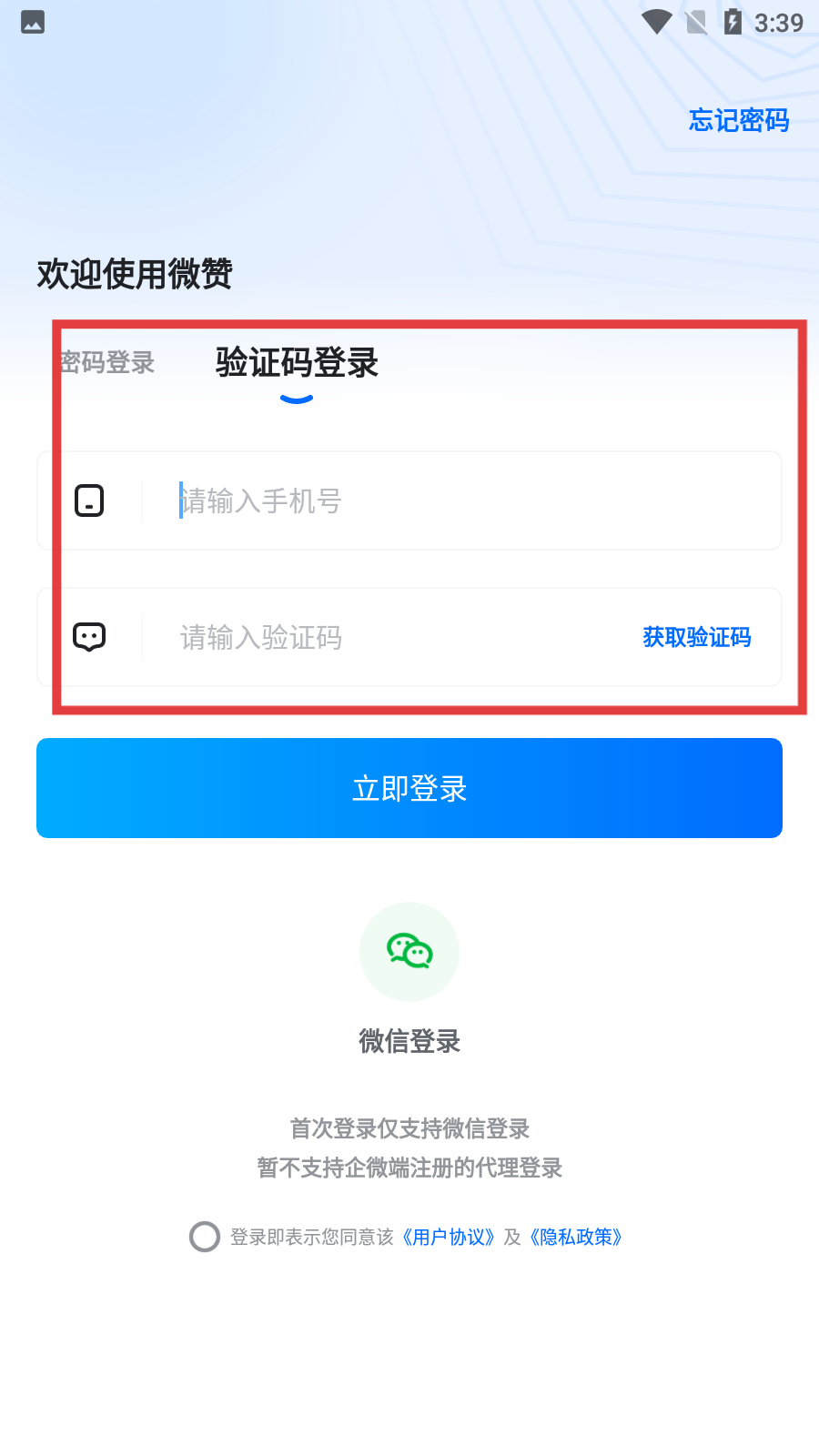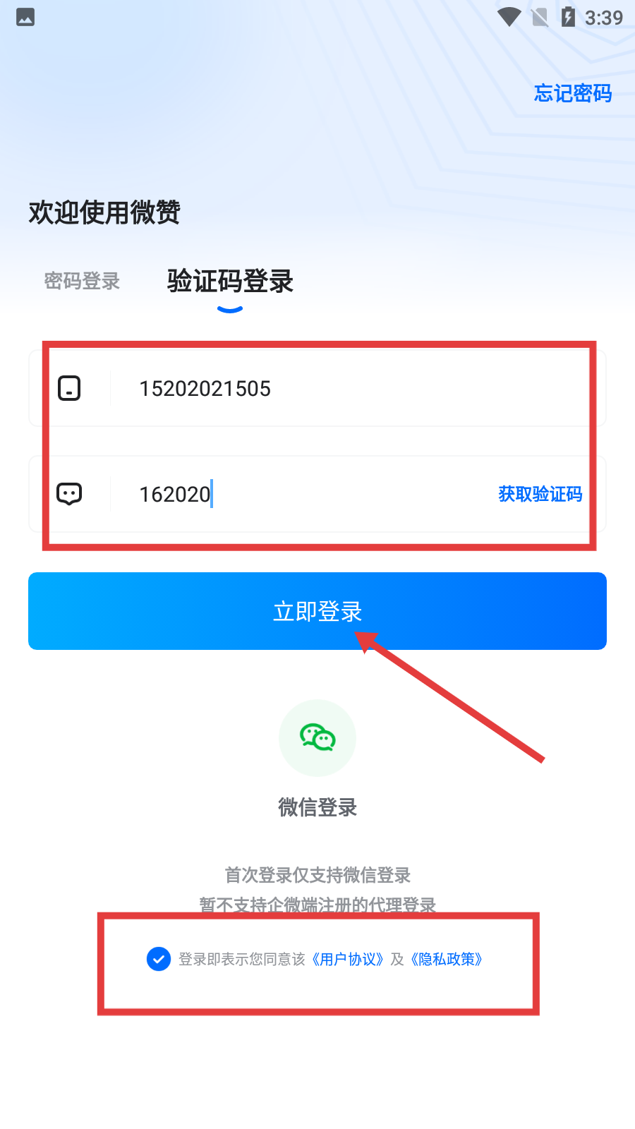 4、在驗(yàn)證碼輸入框中填入正確驗(yàn)證碼,勾選同意協(xié)議后點(diǎn)擊【立即登錄】,完成登錄流程。