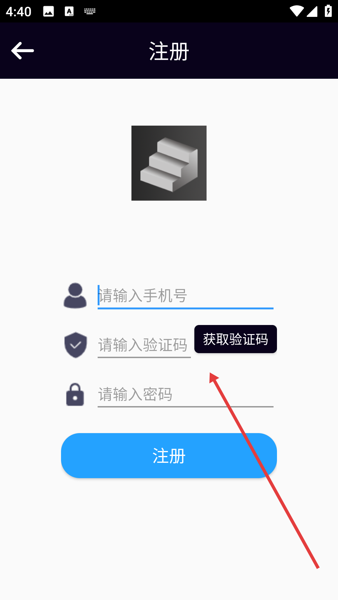 3、在注冊頁面輸入手機號,點擊【獲取驗證碼】,輸入驗證碼并設置密碼。
