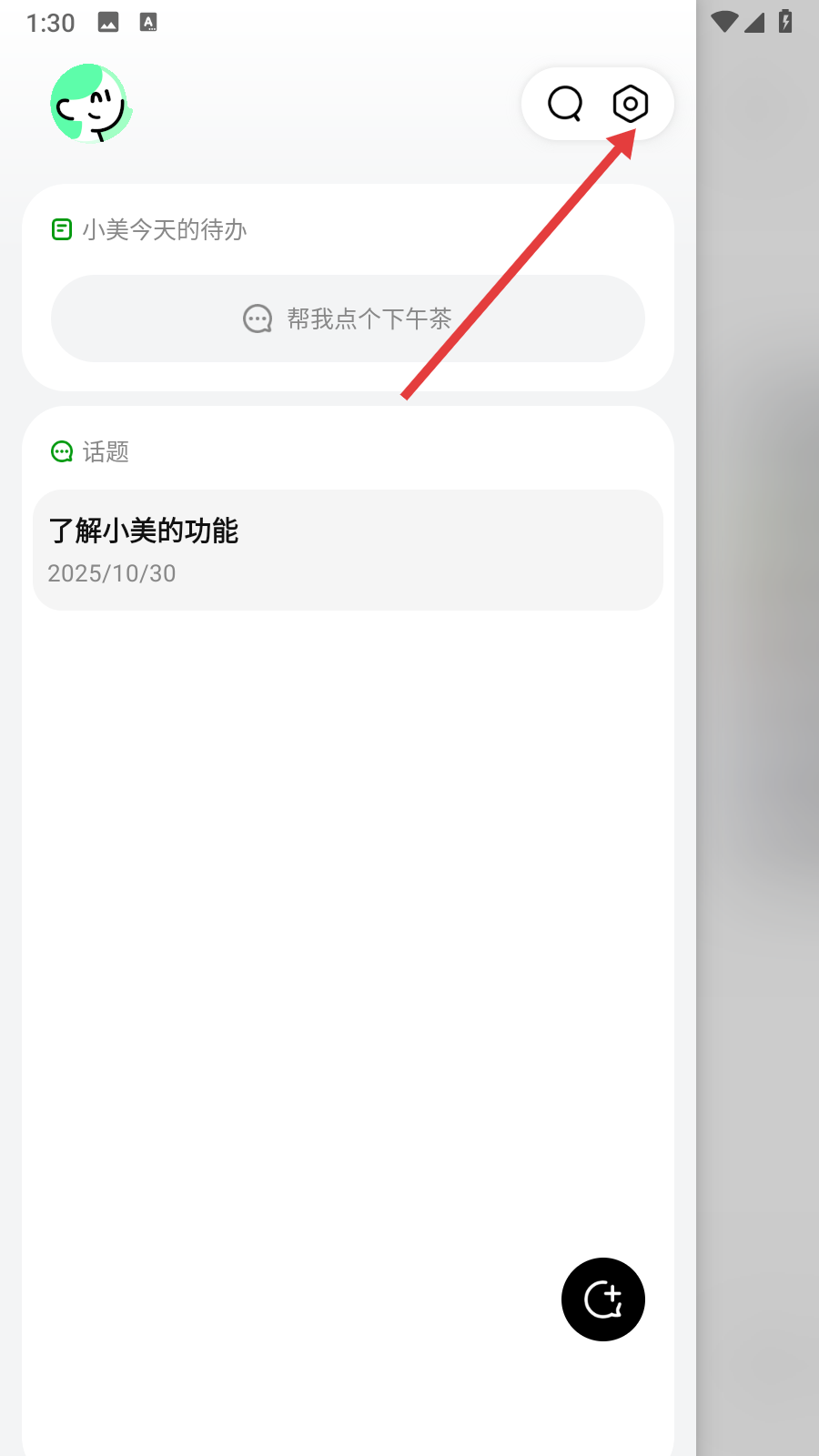 2、點(diǎn)擊右上角紅色箭頭指向的設(shè)置圖標(biāo),進(jìn)入設(shè)置頁(yè)面。