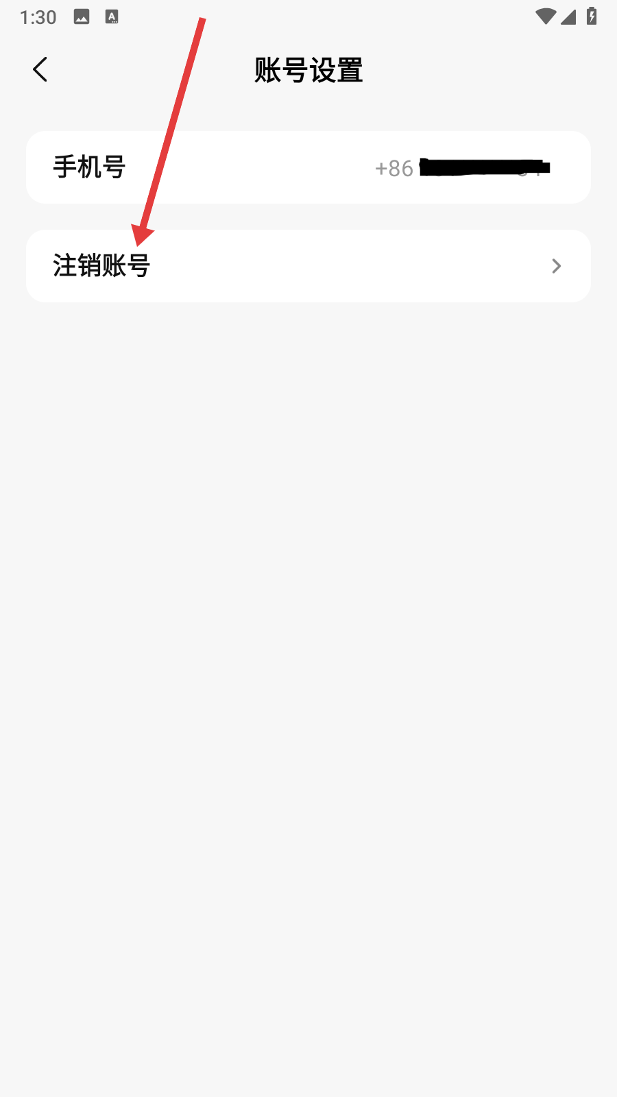 4、在賬號(hào)設(shè)置頁(yè)面中,點(diǎn)擊【注銷(xiāo)賬號(hào)】選項(xiàng),進(jìn)行賬號(hào)注銷(xiāo)操作。
