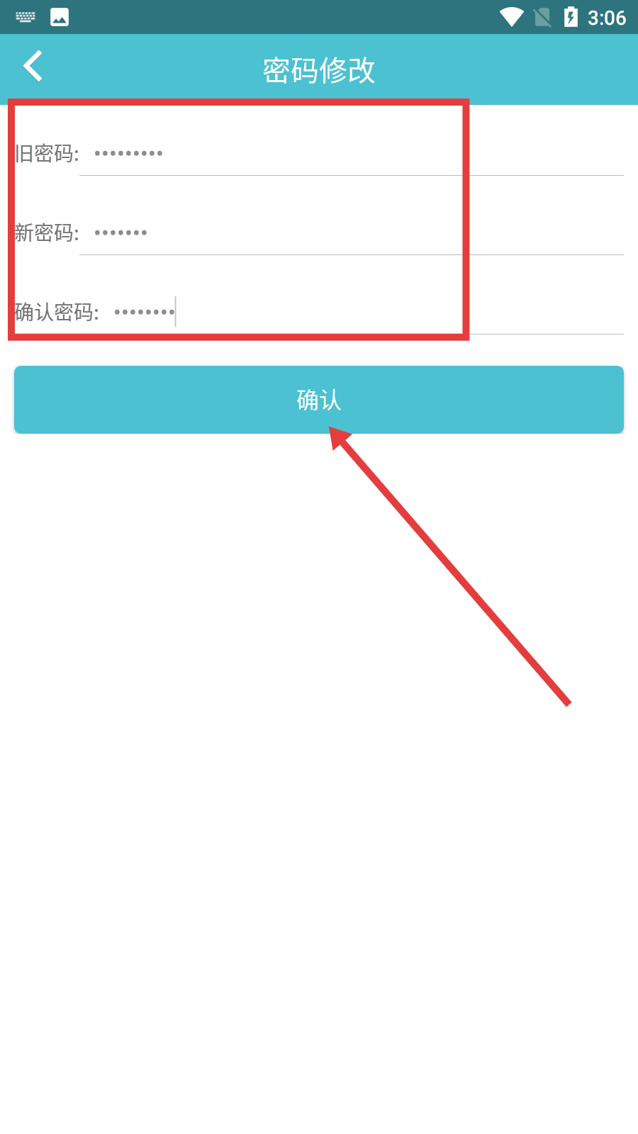 4、在【密碼修改】頁(yè)面,依次輸入舊密碼、新密碼、確認(rèn)密碼,點(diǎn)擊【確認(rèn)】按鈕完成密碼修改。