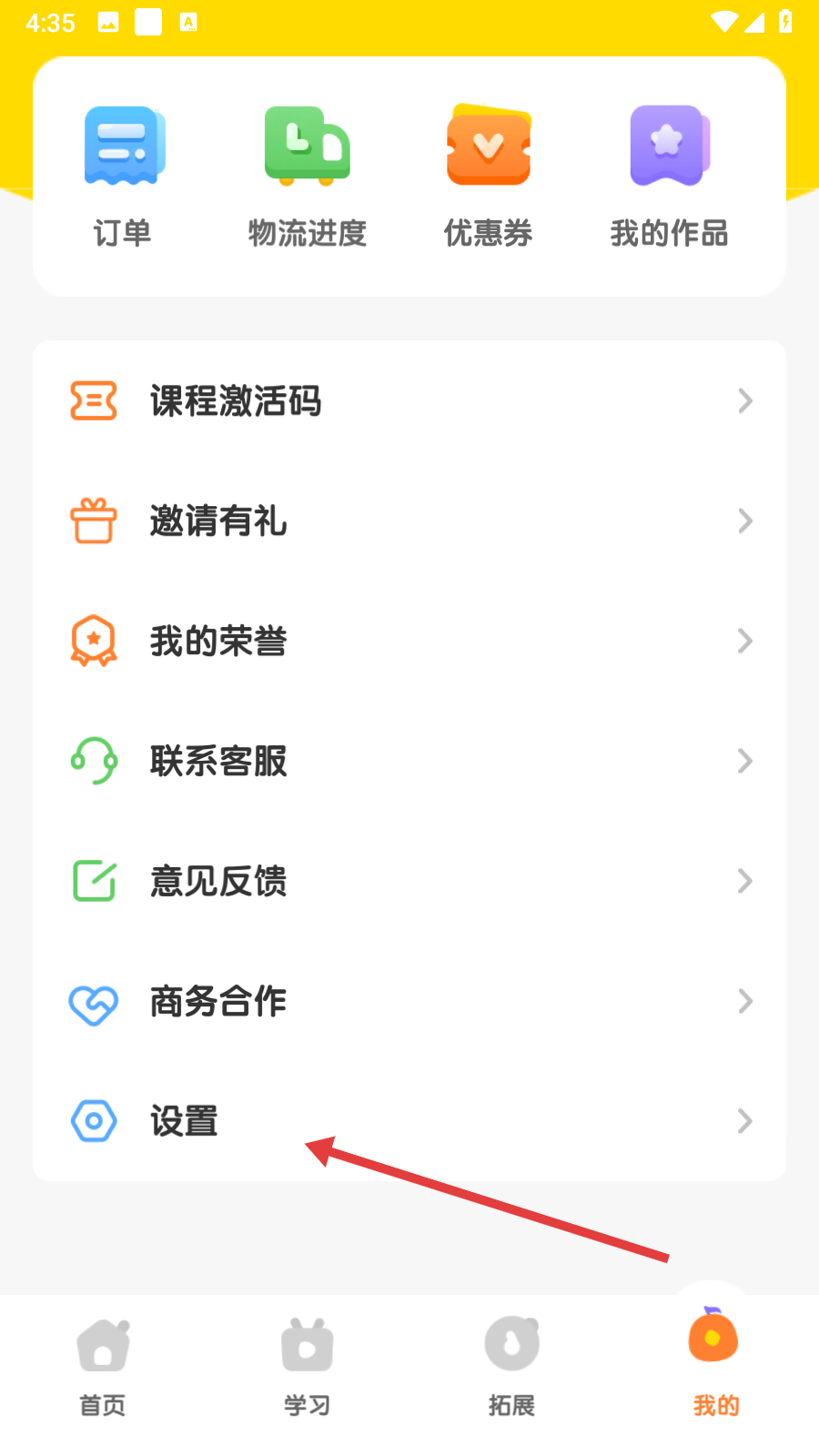 2、在個人中心頁面,找到并點擊【設(shè)置】選項,進入設(shè)置界面。
