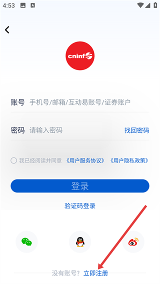 3、在登錄界面,若沒有賬號,點(diǎn)擊【立即注冊】按鈕,進(jìn)入注冊頁面。