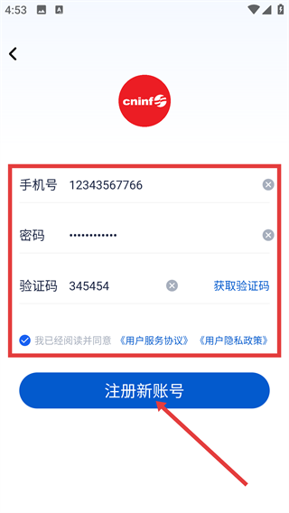 4、在注冊頁面,填寫【手機(jī)號】【密碼】【驗(yàn)證碼】,勾選同意協(xié)議后點(diǎn)擊【注冊新賬號】,即可完成注冊。