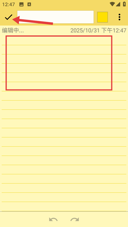4、在編輯好便簽內(nèi)容后,點擊左上角的對勾按鈕,保存當(dāng)前便簽。