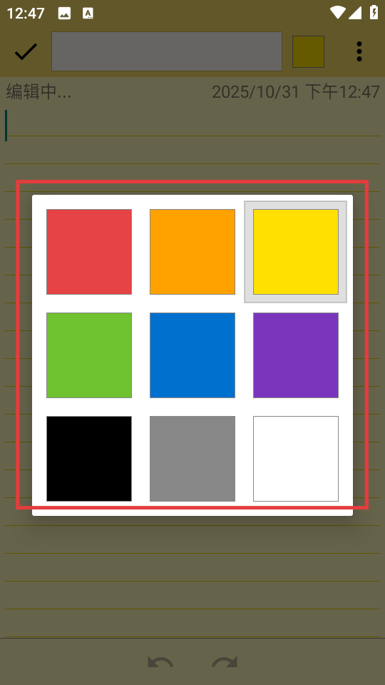 3、在文本便簽編輯頁面,可選擇多種顏色來設(shè)置便簽背景。