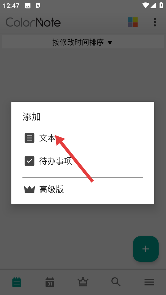 2、在添加選項窗口中,點擊【文本】選項,進入文本便簽編輯頁面。