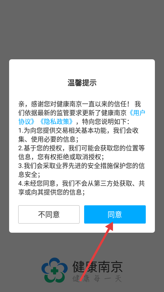 1、在溫馨提示彈窗中點(diǎn)擊【同意】,進(jìn)入登錄頁面。