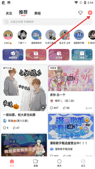 5、設(shè)有多元興趣群組,涵蓋明星、影視、動漫等主題,組內(nèi)提供圖文、直播、聊天室等玩法,用戶可創(chuàng)建或加入群組尋找同好。