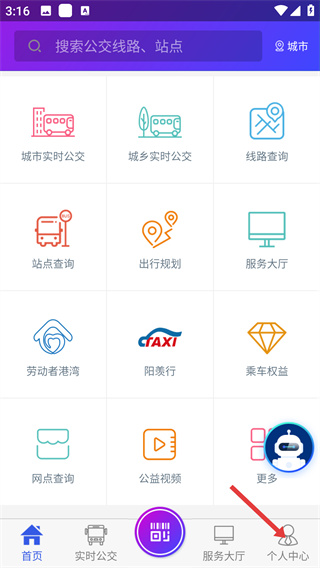 1、進入公交APP首頁,點擊底部【個人中心】,進入個人中心頁面。