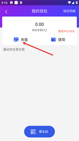 3、在我的錢包頁面,點擊【充值】,進入充值金額選擇頁面。