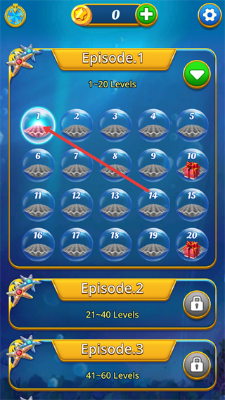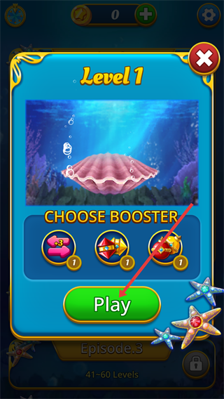 1、點(diǎn)擊【Episode.1】下帶有粉色貝殼的【Level-1】,進(jìn)入第一關(guān)的準(zhǔn)備界面。