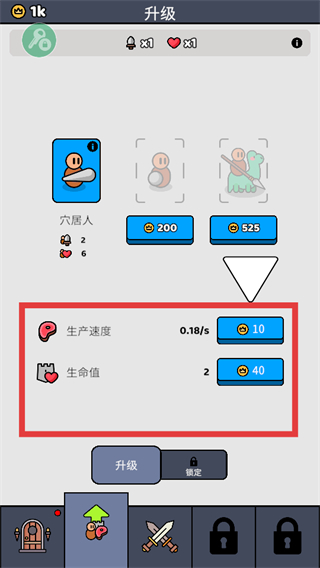 1、在升級界面優(yōu)先提升【生產(chǎn)速度】和【生命值】,消耗金幣強化戰(zhàn)士基礎(chǔ)屬性,為后續(xù)戰(zhàn)斗筑牢根基。