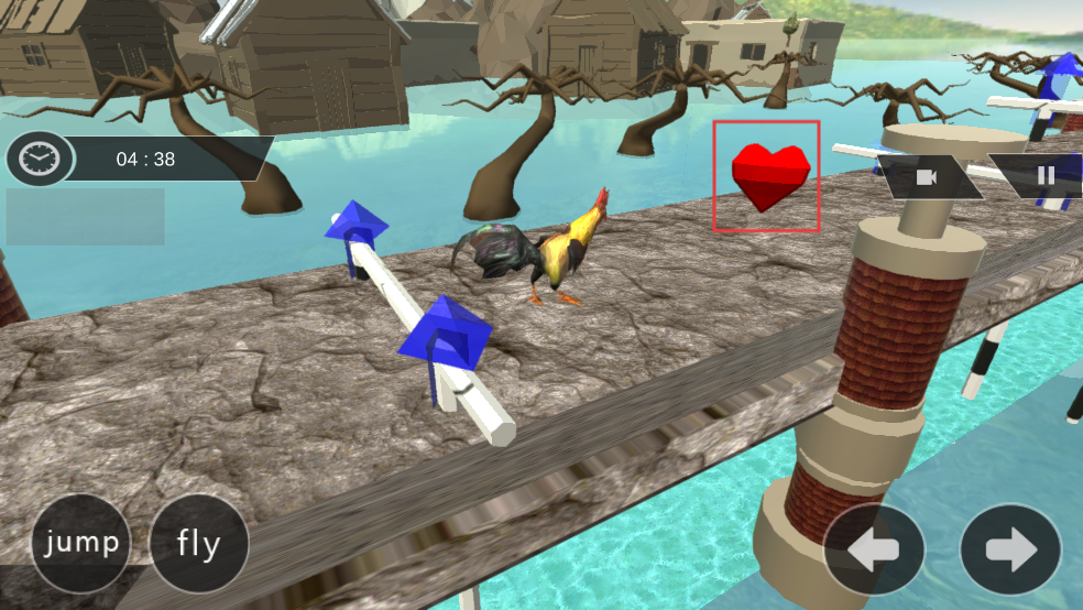 3、遇到紅色方框內的紅心道具要收集,可增加生命值,同時避開藍色障礙物,確保公雞安全前行。