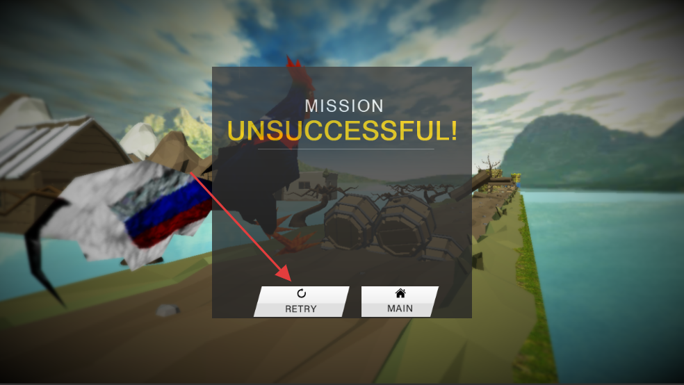 4、任務失敗時點擊【RETRY】按鈕重新挑戰(zhàn),不斷嘗試以完成關卡任務,提升游戲成功率。