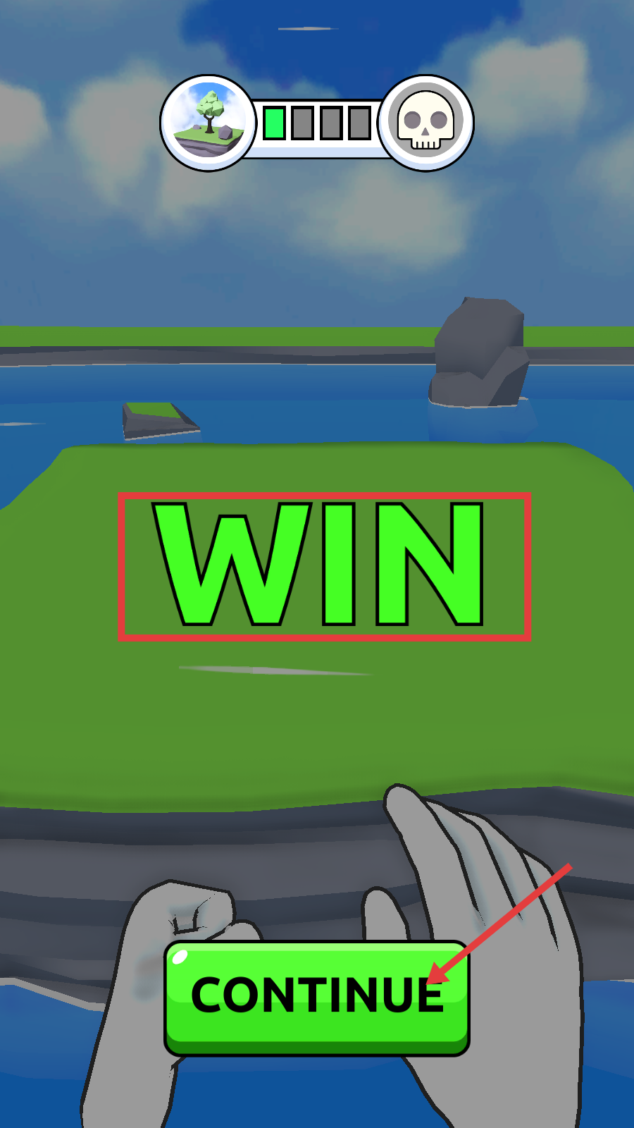 4、達(dá)成勝利后界面顯示【W(wǎng)IN】,點(diǎn)擊【CONTINUE】繼續(xù)游戲,可開啟新的游戲內(nèi)容或關(guān)卡。