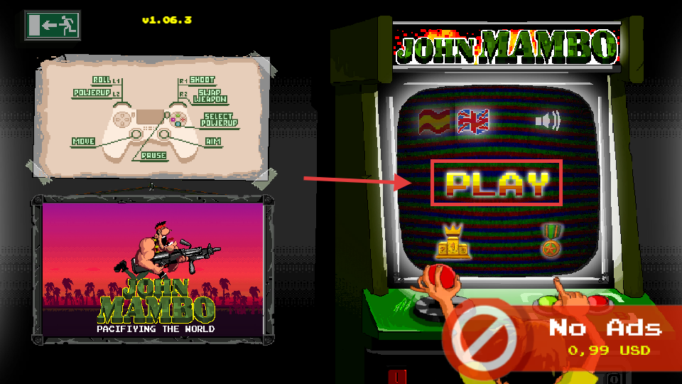 1、游戲開(kāi)局點(diǎn)擊【PLAY】進(jìn)入,左側(cè)有操作說(shuō)明,需熟悉移動(dòng)、射擊等鍵位功能,為后續(xù)任務(wù)鋪墊。