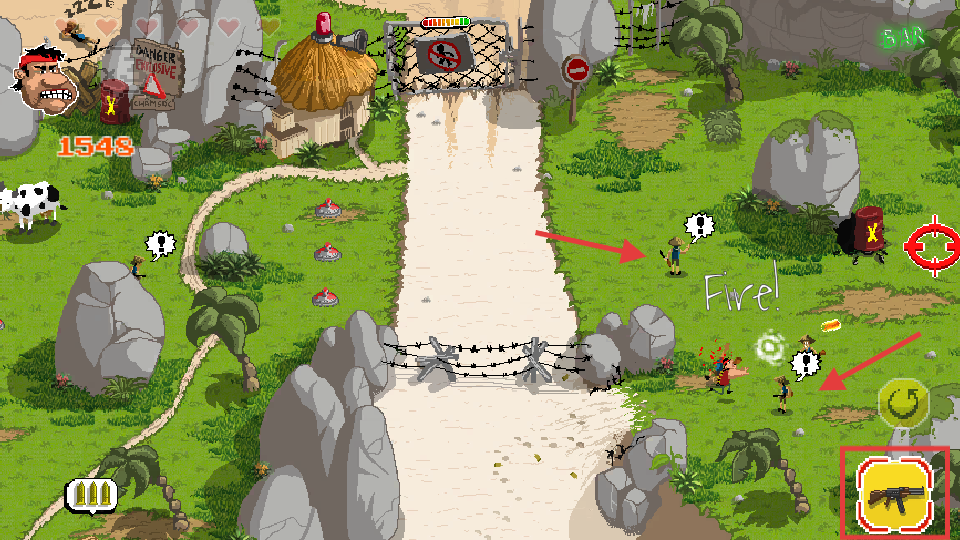 3、遭遇敵人時(shí),點(diǎn)擊右下角【槍械】按鈕射擊,優(yōu)先清除有【Fire】提示的敵人,關(guān)注左側(cè)【彈藥】數(shù)量及時(shí)補(bǔ)充。