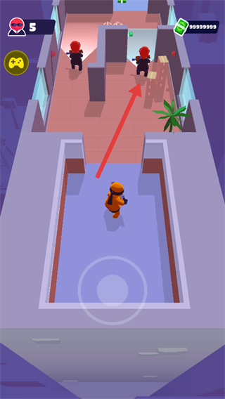 1、進入場景后,觀察敵人位置,沿著箭頭指示方向悄悄接近,避免被敵人發(fā)現。