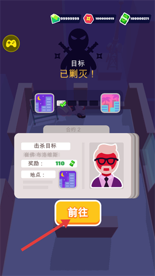 4、成功剿滅目標后,點擊【前往】按鈕,領取【擊殺目標-崔佛·布洛德斯-獎勵110】等獎勵,開啟新的任務。