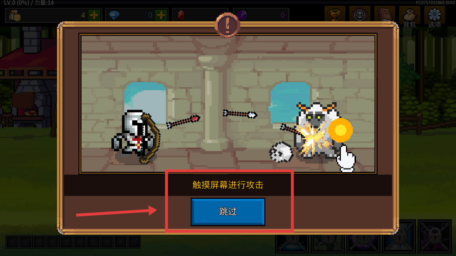 1、戰(zhàn)斗時(shí),可觸摸屏幕攻擊敵人,也可點(diǎn)擊【跳過】按鈕快速推進(jìn)戰(zhàn)斗進(jìn)程。