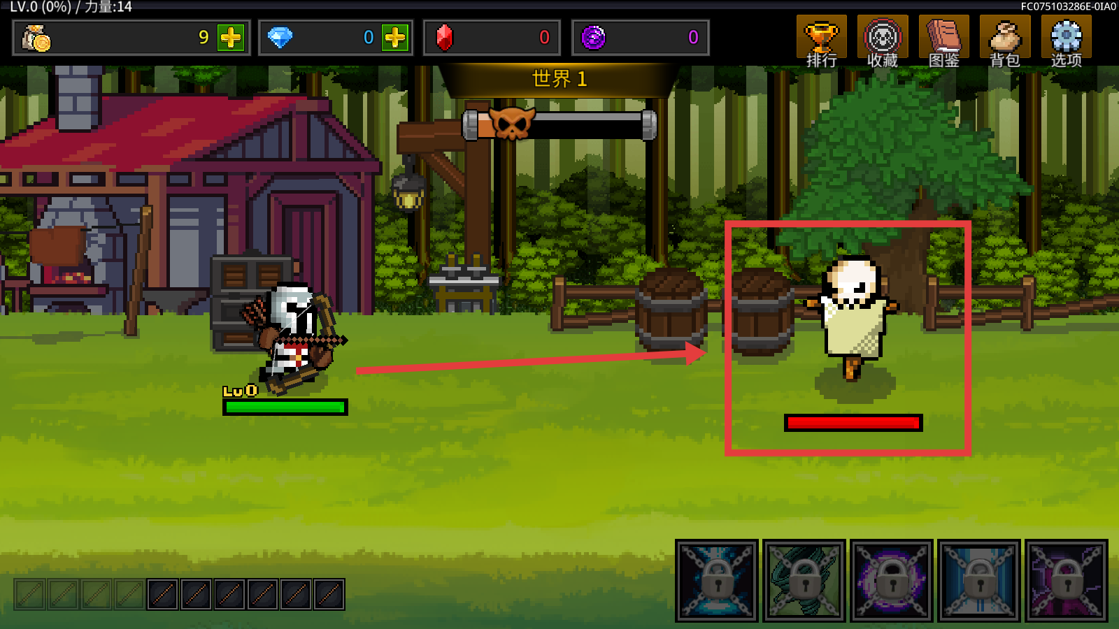 2、在【世界】中,操控角色攻擊骷髏類敵人,留意敵人血條,合理輸出確保勝利。