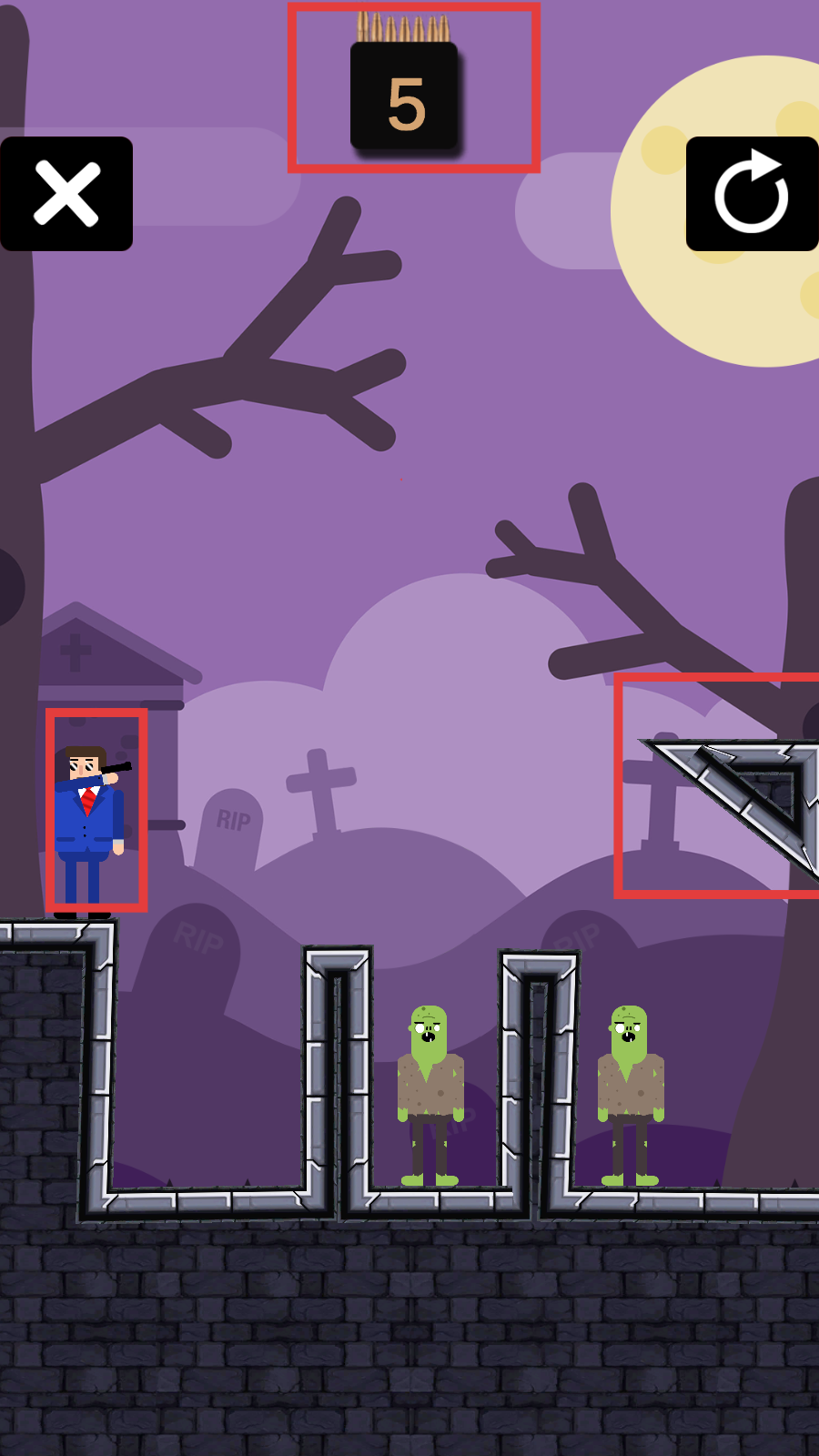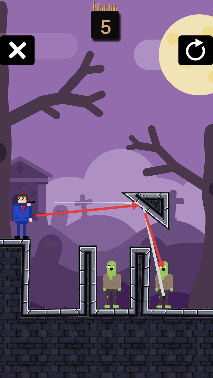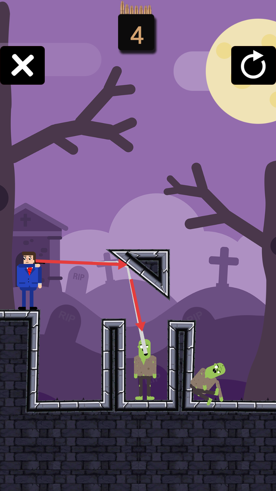 2、瞄準(zhǔn)反射鏡,利用其反彈原理,依次消滅所有僵尸。