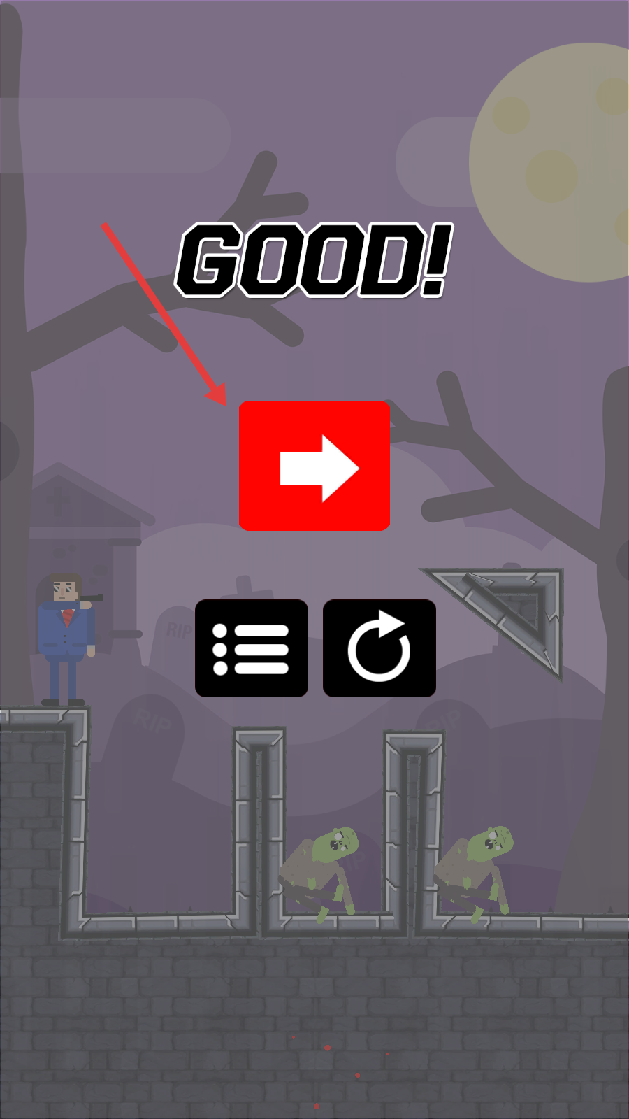 4、消滅所有僵尸后,點(diǎn)擊紅色箭頭按鈕,進(jìn)入下一關(guān)繼續(xù)挑戰(zhàn)。