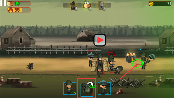 3、戰(zhàn)斗中合理使用【手榴彈】進(jìn)行范圍攻擊,瞄準(zhǔn)敵方密集區(qū)域,有效清剿敵人并推進(jìn)戰(zhàn)線。