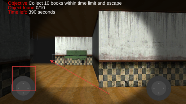 2、游戲中通過左側(cè)方向鍵移動,留意【Objective-Collect-10-books-within-time-limit-and-escape】的任務,在場景中尋找書籍。