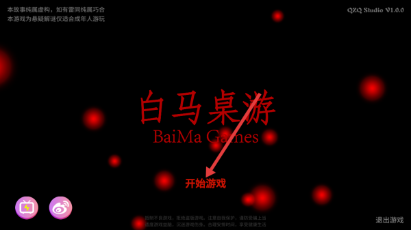 1、點擊【開始游戲】進入【白馬桌游-BaiMa-Games】,了解游戲背景,為后續(xù)探索和推理做好準備。