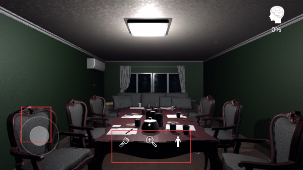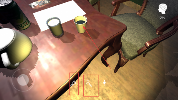 2、游戲中利用下方功能按鈕,如手電筒和放大鏡,在房間中探索,留意桌上的物品,尋找線索。