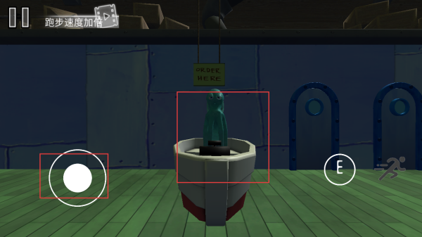 3、利用左側(cè)移動按鈕控制角色移動,留意【ORDER-HERE】標(biāo)識的區(qū)域,與綠色角色互動,推進任務(wù)進度。