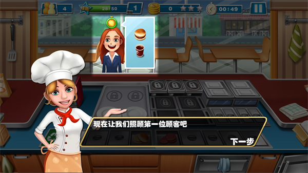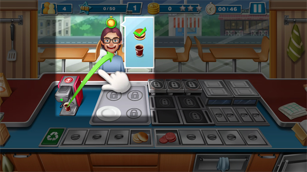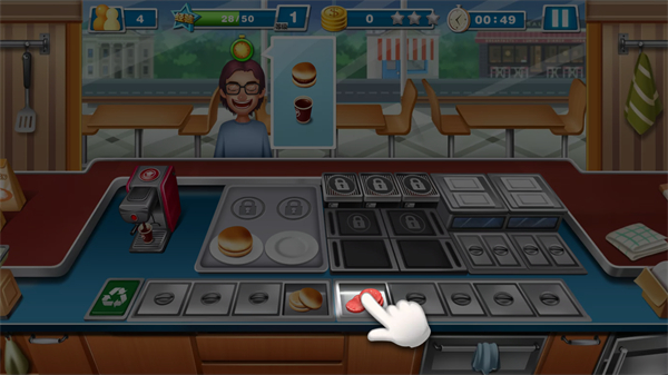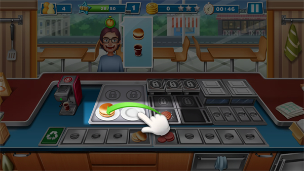 2、游戲操作容易上手,通過輕敲就能完成烹飪、準(zhǔn)備和上菜等步驟,同時(shí)包含很多不同挑戰(zhàn),讓玩家持續(xù)獲得新鮮體驗(yàn)。