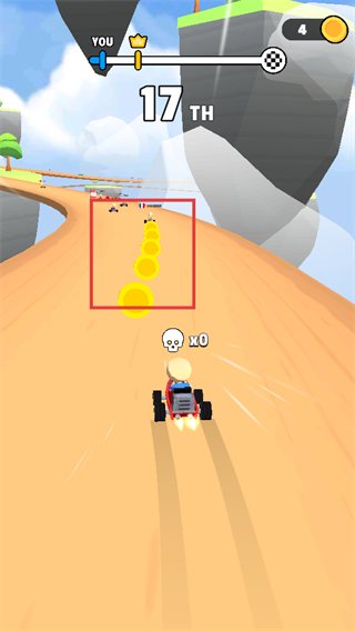 3、賽道上的【黃色金幣】要盡量收集,積累金幣可用于解鎖新卡丁車或道具。