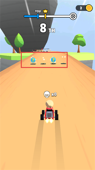 2、碰到帶【?】的道具區(qū)域,優(yōu)先選擇駛?cè)耄呻S機(jī)獲得增益道具助力比賽。