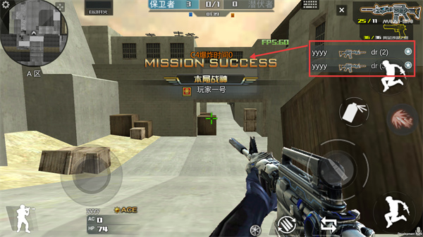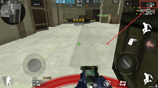 3、在爆破對局中,利用右上角道具按鈕切換裝備,優(yōu)先搶占【A區(qū)】下包,配合隊(duì)友殺敵。