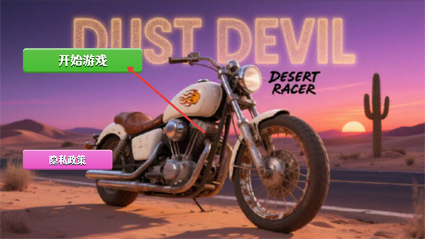 1、點擊【開始游戲】按鈕,進入【Dust-Devil-Desert-Racer】游戲,開啟摩托車沙漠競速之旅。