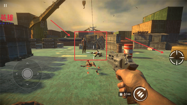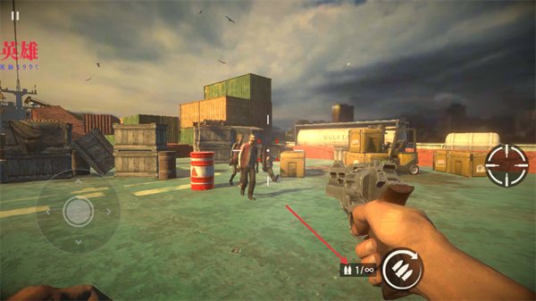 2、操作右側(cè)瞄準(zhǔn)鍵瞄準(zhǔn)喪尸,進(jìn)行射擊。