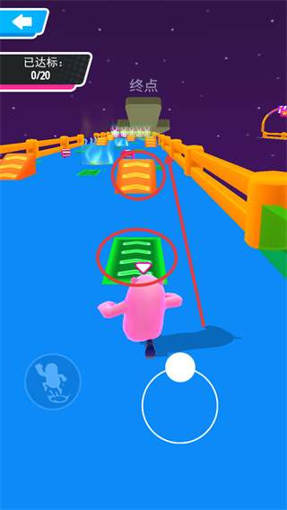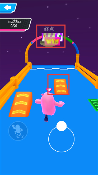 2、關(guān)卡目標(biāo)【0/20】,操控角色移動,利用場景中的綠色加速帶,加快行進(jìn)。