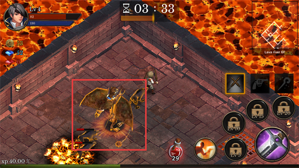 4、通過持續(xù)升級英雄的各項(xiàng)技能與能力,可以挑戰(zhàn)并探索規(guī)模更大、內(nèi)容更豐富的困難級別地牢副本。