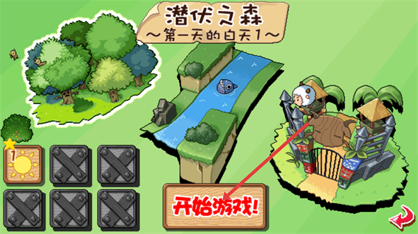 1、進(jìn)入第一天的場景后,點擊界面中的【開始游戲】按鈕,即可開啟該關(guān)卡的游玩流程,進(jìn)入對應(yīng)的游戲區(qū)域。