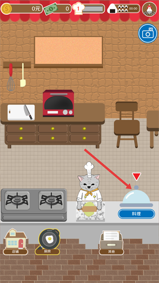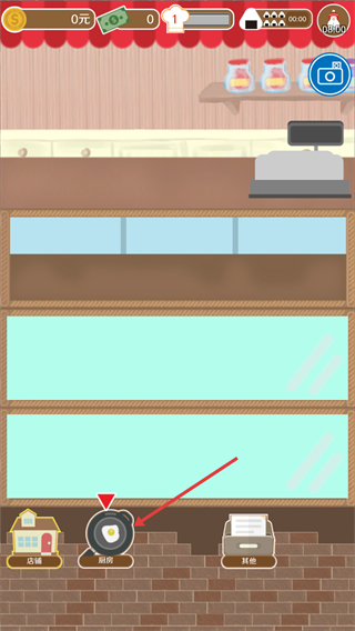 1、進(jìn)入游戲,點(diǎn)擊底部的【廚房】按鈕,切換至廚房場(chǎng)景。