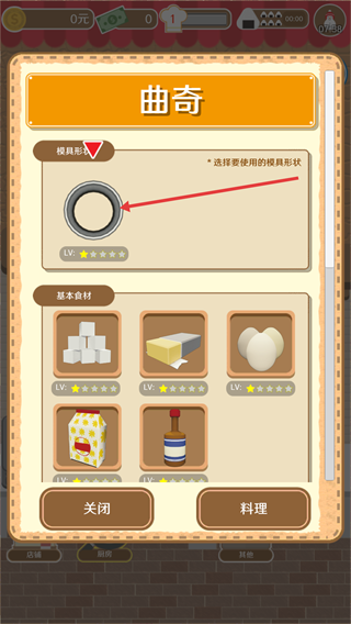 4、選擇對(duì)應(yīng)的【模具形狀】,再確認(rèn)基本食材,即可準(zhǔn)備進(jìn)行甜品制作。