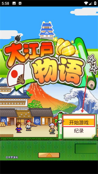 1、在《大江戶物語》主界面,點擊【開始游戲】可進入江戶時代的經(jīng)營玩法,【記錄】用于讀取存檔。