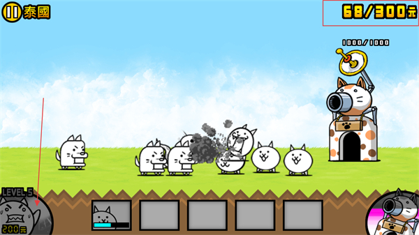2、在關卡中,消耗金幣召喚貓咪單位,部署隊伍進攻敵方陣地,積累戰(zhàn)局優(yōu)勢。